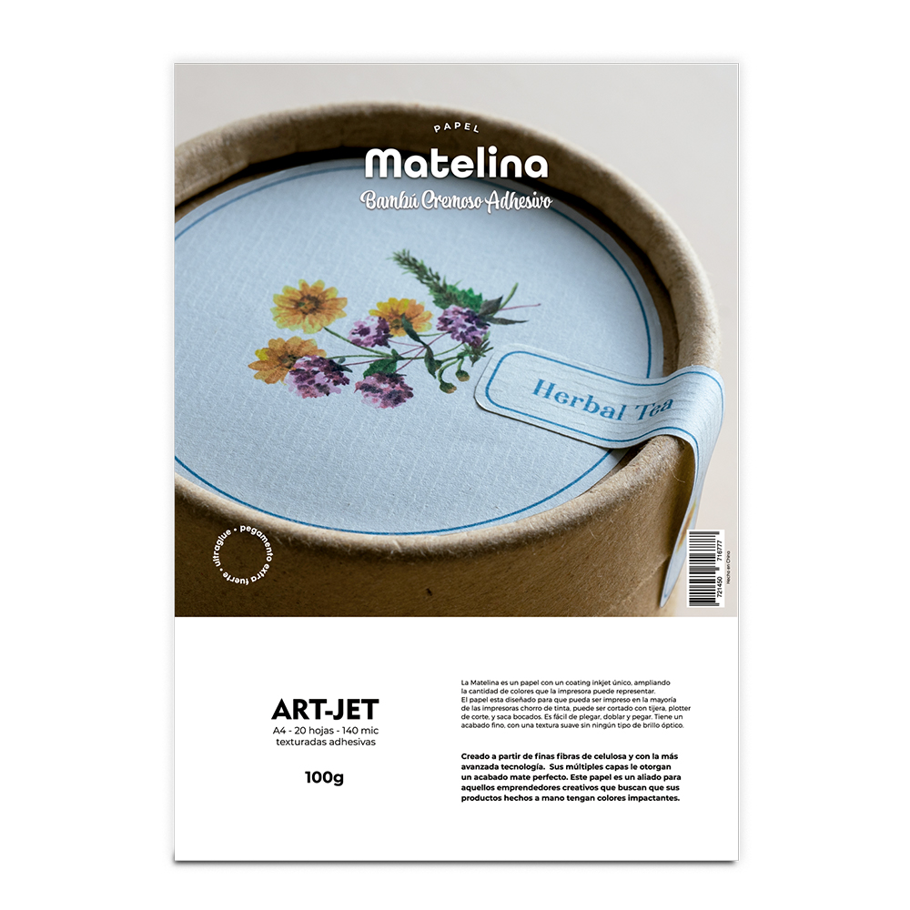 Art-jet A4 100 Grs Fotografico Adhesivo Mate Texturado Bambu Marfil X 20 Hojas